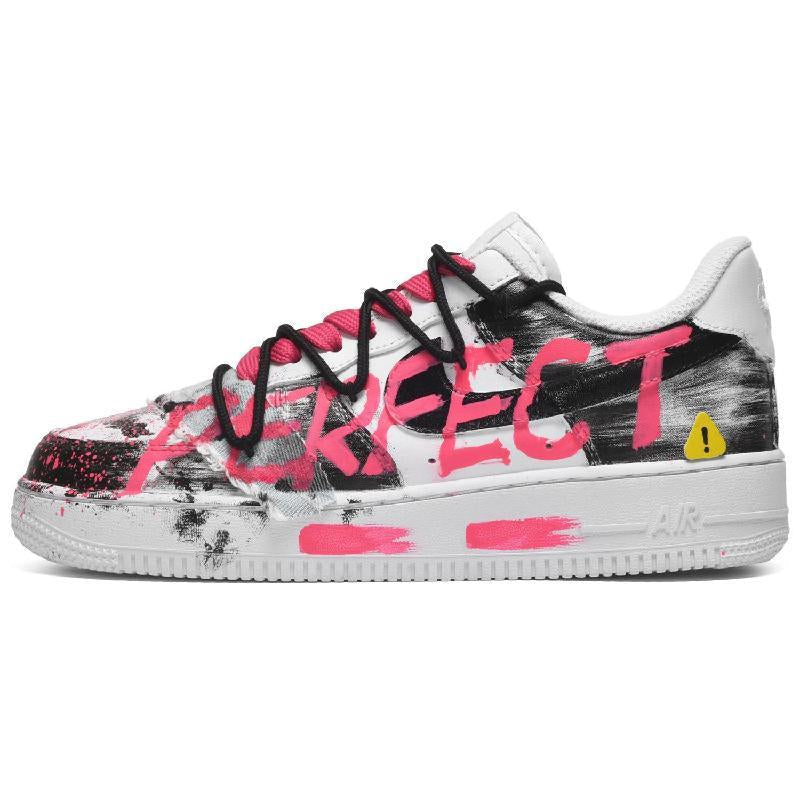 [Custom Men's perfect warning black and white rose] Air Force 1 Skateboarding Shoes Men Low-top Black And White Roses
