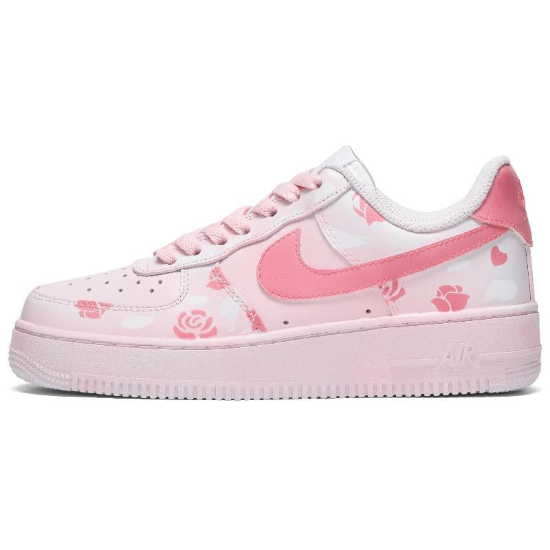 [Custom Men's pink roses] Air Force 1 Skateboarding Shoes Men Low-top Pink And Blue