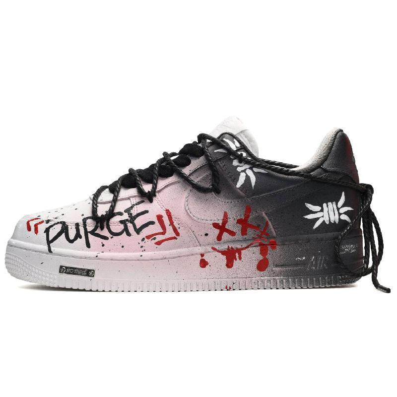 [Custom Men's splashing graffiti in black, white and red]  Air Force 1 Skateboarding Shoes Men