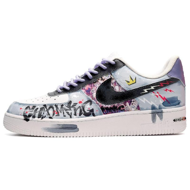 [Custom Men's street graffiti in black, white and blue]  Air Force 1 Skateboarding Shoes Men