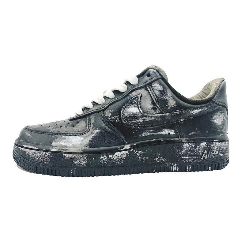 [Custom Men's style with aged scratches in black] Air Force 1 Skateboarding Shoes Men Low-top Black