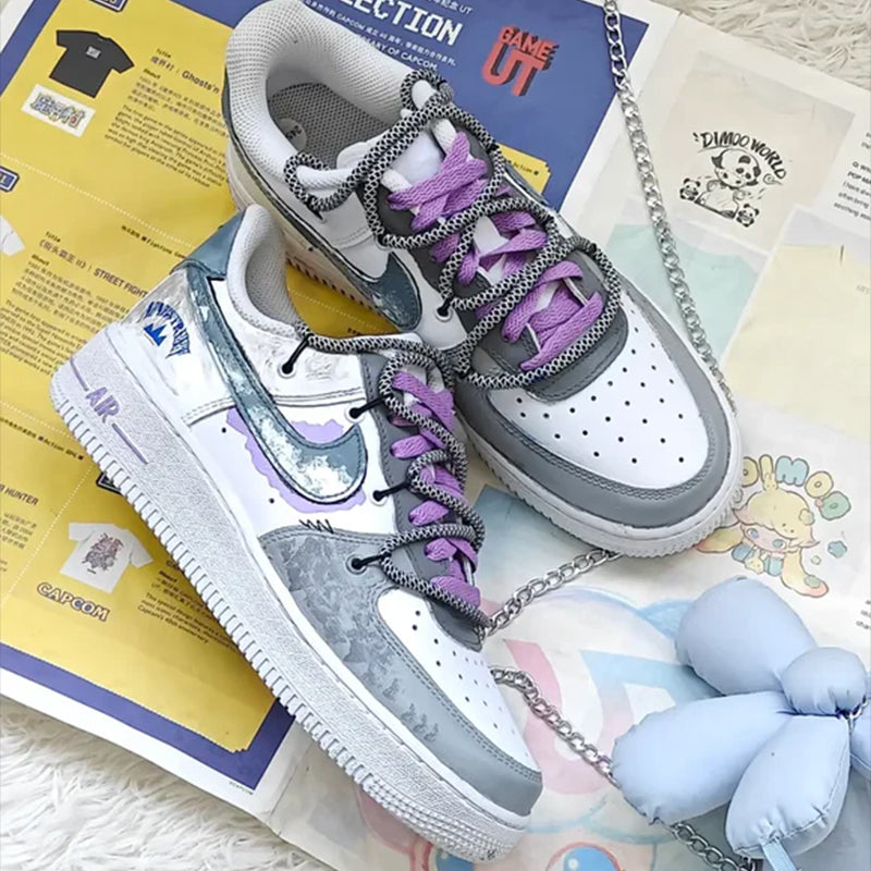 [Custom Ninth Street 2.0] Air Force 1 Skateboard Shoes Unisex Low-Top Gray/White/Gray Blue/Purple/Blue/Black