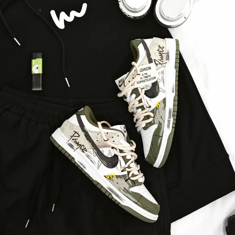 [Custom No Man's Land / Graffiti] Dunk Low Skateboard Shoes Unisex Green