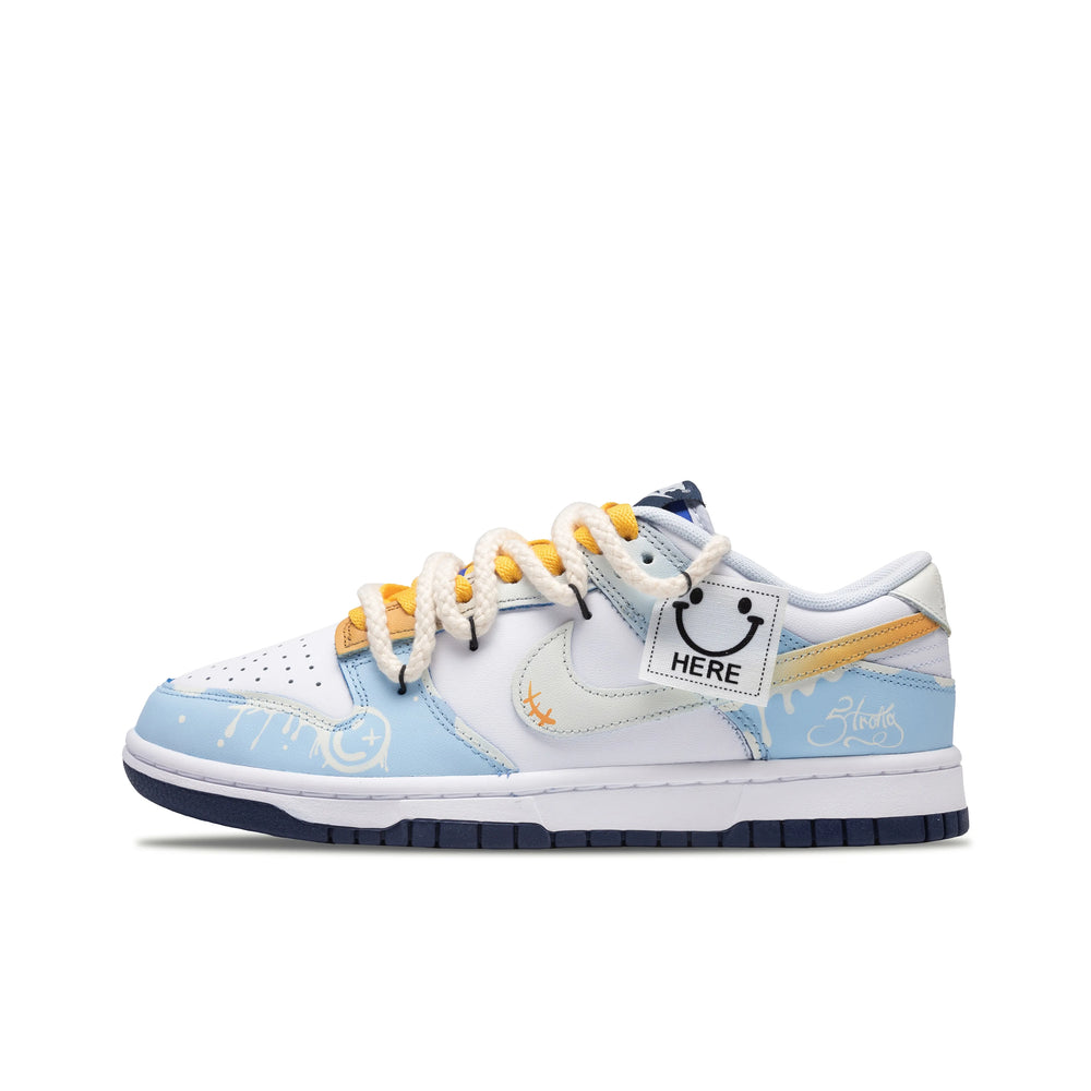 [Custom Ode to Joy] Dunk Skateboarding Shoes Unisex Smiley Graffiti White/Blue