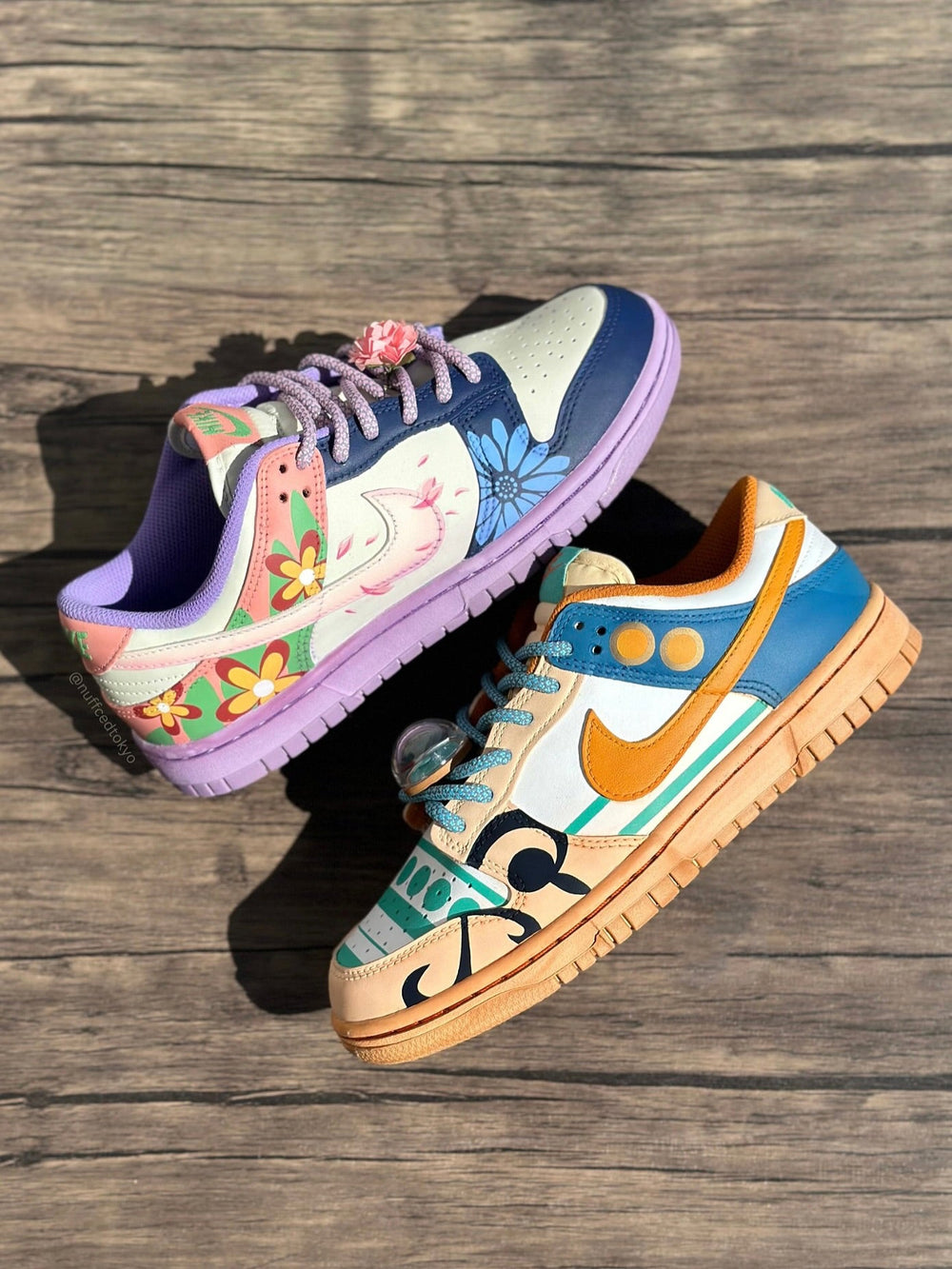 [Custom ONE PIECE Nami&Nico Robin] Dunk Skateboarding Shoes Men Spilt Color Orange/Purple