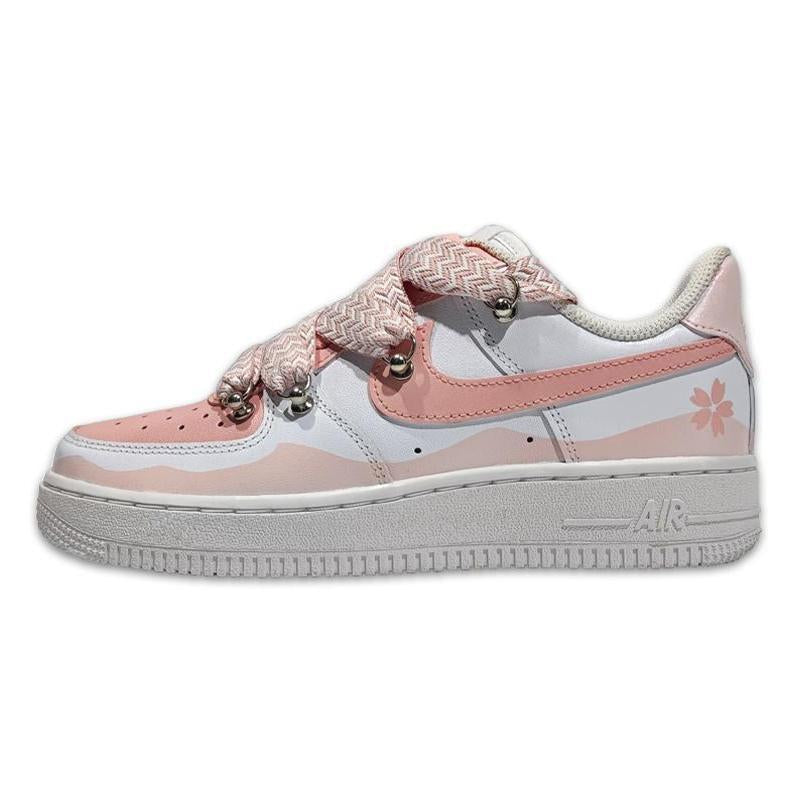 [Custom Pink Cherry Blossom Air Force]  Air Force 1 Skateboarding Shoes Women's Low-top Cherry Blossom Powder