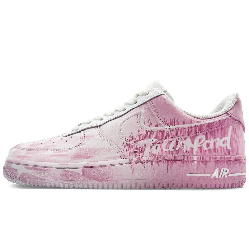 [Custom Pink frequency]  Air Force 1 Skateboard Shoes Unisex Low-Top White/Pink