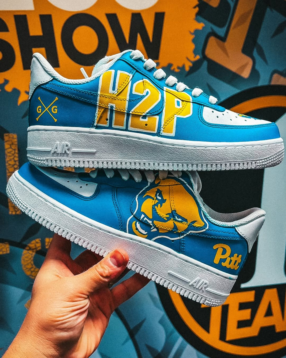 Each pair is hand-painted and sealed with a professional finisher to ensure durability. The artwork is waterproof and resistant to cracking under normal wear.