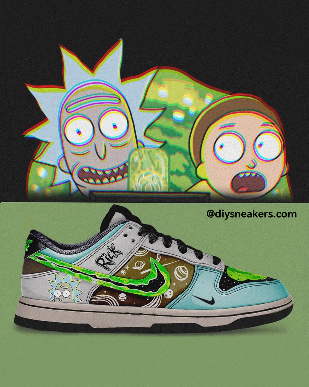 [Custom Rick&Morty Green]Dunk Low Unisex Street Graffiti Skateboarding Shoes