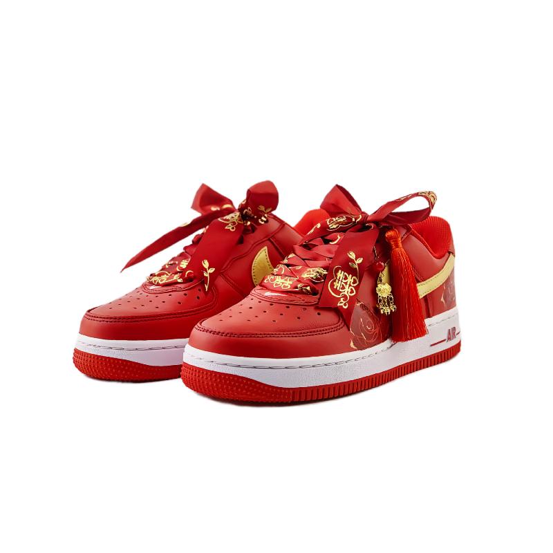 [Custom Rose vow wedding shoes] Air Force 1 Skateboarding Shoes Unisex Low-top Red/Gold