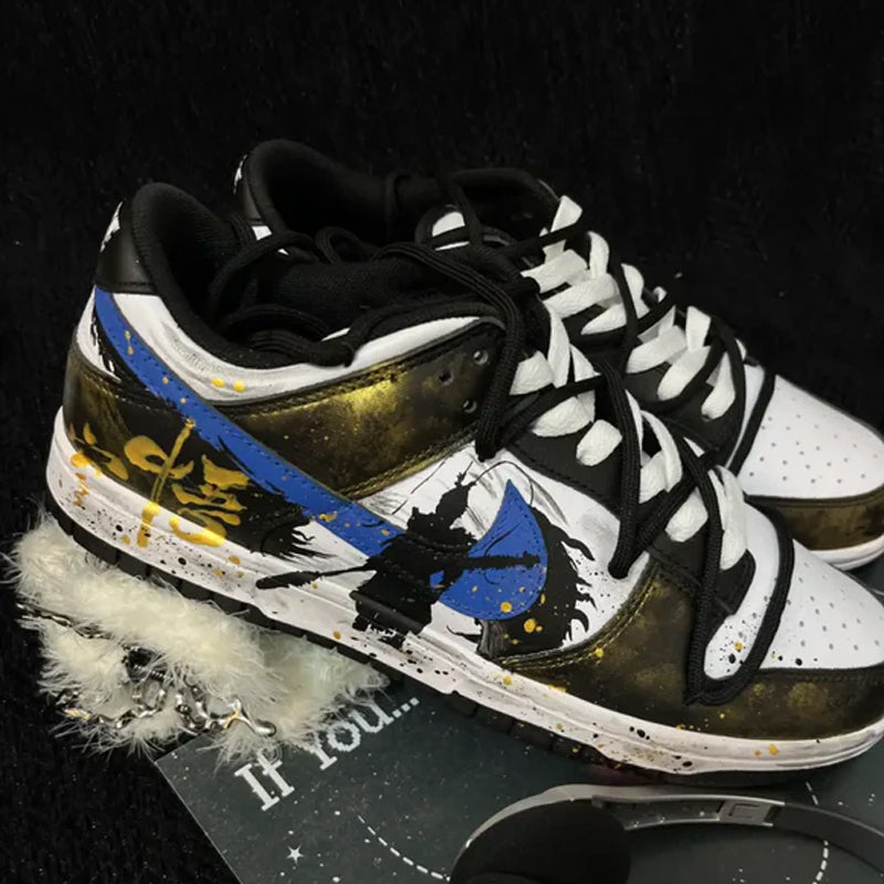 [Custom Ruyi Jingu Bang] Dunk Black Myth Goku Skateboarding Shoes Unisex Black and Gold