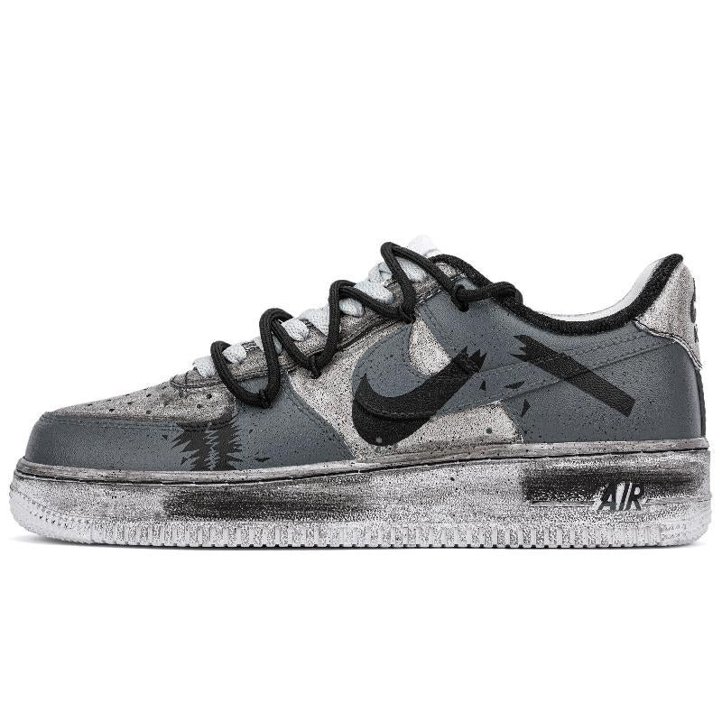 [Custom Shadow breaks] Air Force 1 Skateboarding Shoes Unisex Low-top Black/grey