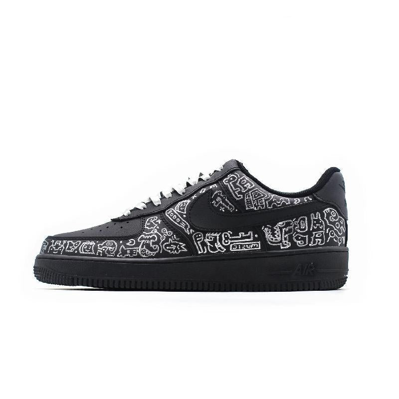 [Custom Silver little monster] Air Force 1 Skateboarding Shoes Unisex Low-top Black/silver
