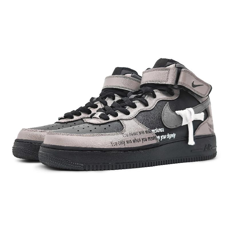 [Custom "Unyielding in battle, sand, powder and dust ]  Air Force 1 Skateboarding Shoes Women's Mid-top Black/grey