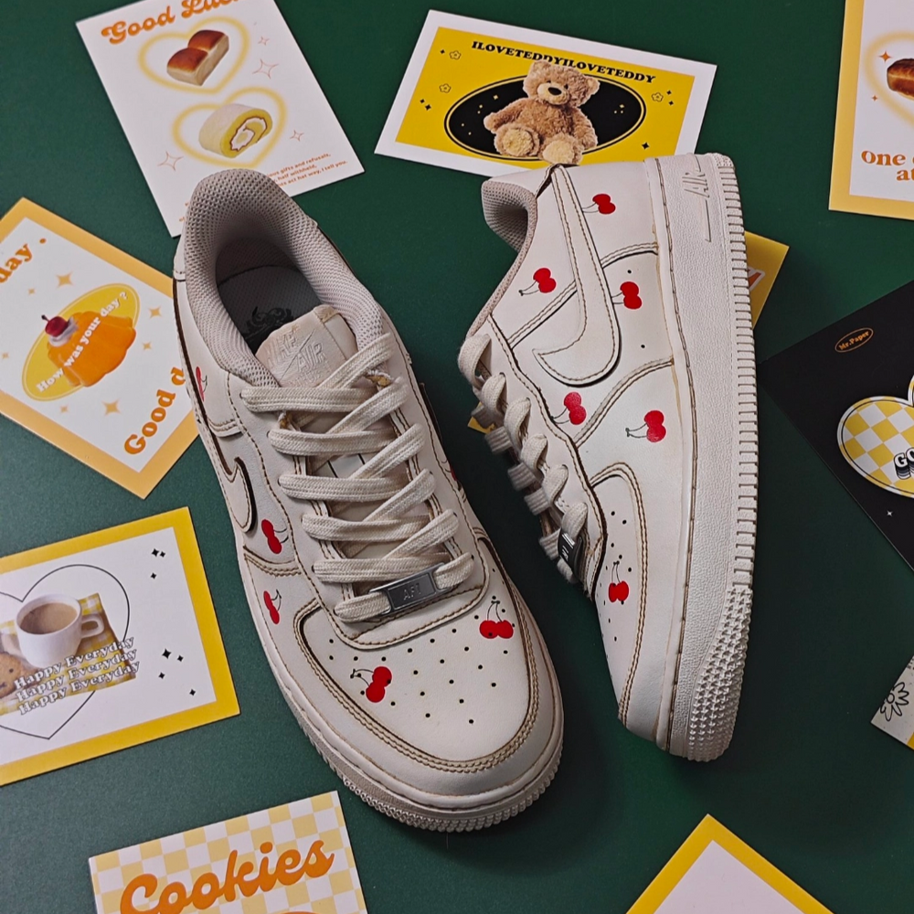 [Custom Women's coffee dyed with cherries]  Air Force 1 Skateboarding Shoes Women's