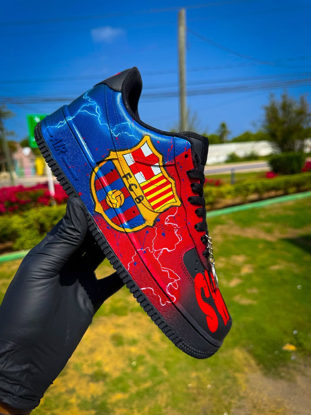 [Customized FCB Hand-painted] Air Force 1 Low-top Shoes Unisex Red/Blue/Black